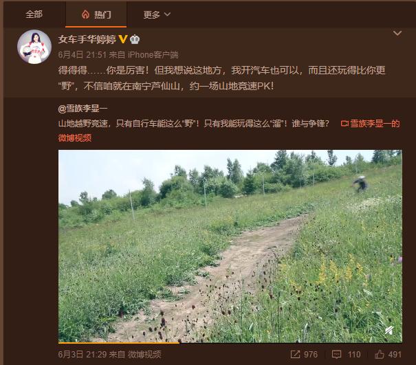 6月3日,国内极限运动,山地自行车名人——李显一在新浪微博发出一条配有视频的微博。或许因为疫情许久没有活动筋骨,或许因为即将前往芦仙山"野"一把,李显一不禁在微博上豪迈发声。没想到,李显一刚放飞自我,就有"后浪"凶猛扑来!美女车手华婷婷在看到之后,立马在微博下留言,想要发起挑战!