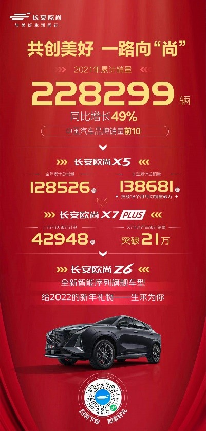 在此背景下,欧尚汽车2021年依然冲进了中国汽车品牌销量前10,累计销量228299辆,同比增长49%,远超整个车市4.4%的同比增长速度。
