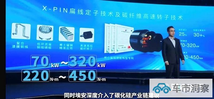 埃安融合自主专利的X-PIN扁线定子技术和碳纤维高速转子技术,在缩小25%体积的情况下,电驱功率提升30%以上。基于电机技术的进步,未来产品将呈现小型化、轻量化、出行形态多样化。X-PIN碳纤维高速电机技术具有3项独有平台绕线方案的国家专利,可实现70kW~320kW功率范围、220~450Nm扭矩范围多平台兼容。