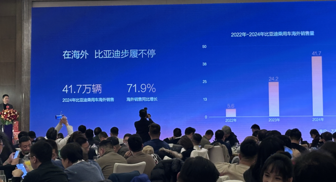 在海外方面,截至2024年末比亚迪已拥有“开拓者”、“常州”、“合肥”三艘大型滚装船正式运营,乘用车海外销售达成41.7万辆、海外销售同比增长71.9%!实现了全面布局全速出海。比亚迪汽车(含商用车)足迹如今已遍布全球100多个国家和地区、400多个城市。