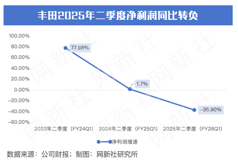 网新社研究所:全球汽车巨头丰田汽车公司发布2026财年第一季度(2025年二季度)业绩。财报显示,尽管营业收入实现12.25万亿日元,同比增长3.5%,但净利润大幅下滑至8413亿日元,同比骤降36.9%,创下三年来最大单季跌幅。
