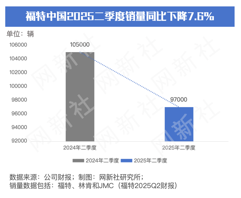 网新社研究所:福特汽车2025年第二季度财务数据显示,公司面临营收增速持续放缓与盈利下滑的双重压力,中国市场销量出现下滑。