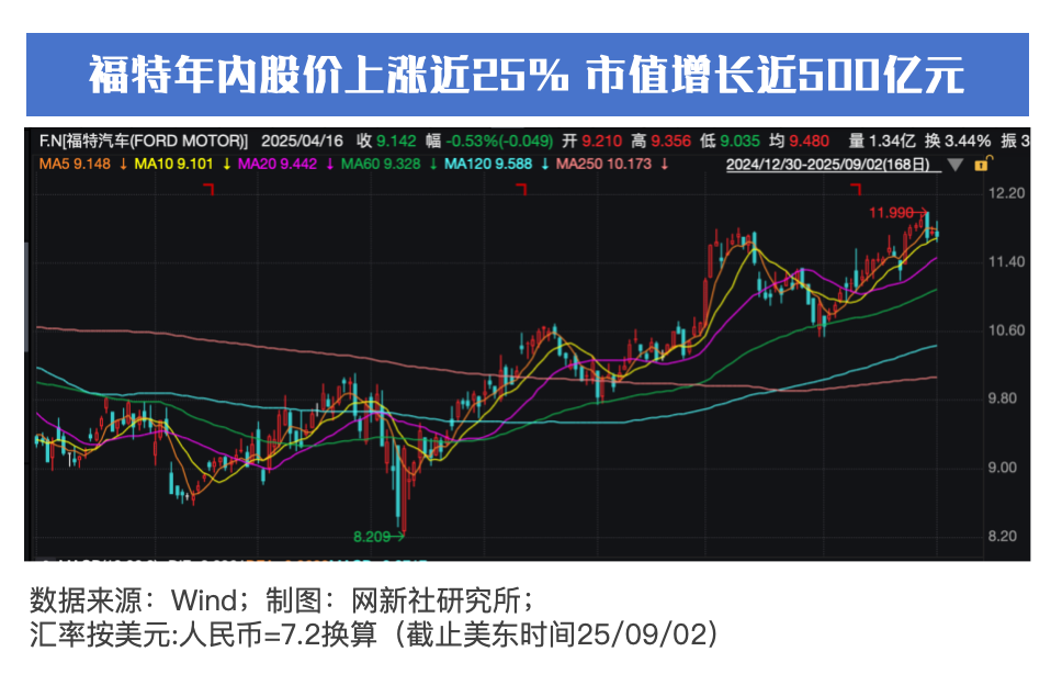 股价方面,福特汽车年内股价表现强势,涨幅约25%,市值增加近74亿美元(约合500亿元人民币),显示资本市场对公司未来前进依然乐观。