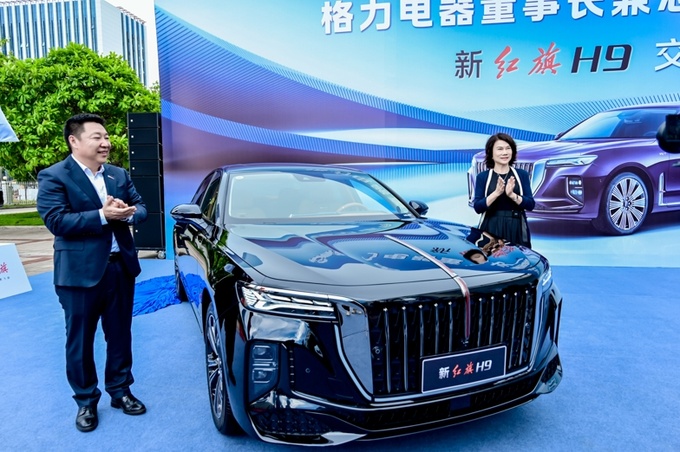 (中国一汽总经理助理兼红旗品牌运营委员会副总裁柳长庆向格力电器股份有限公司董事长兼总裁董明珠女士交付新红旗H9)