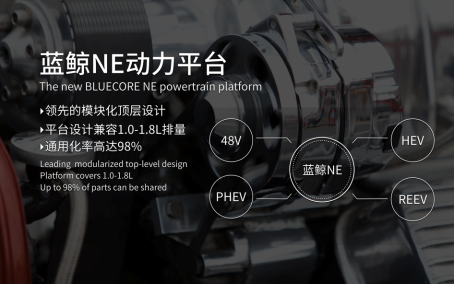 2019年6月,长安汽车对外发布蓝鲸动力品牌,蓝鲸NE动力平台及蓝鲸NE发动机迎来首次亮相。作为中国首个模块化发动机研发平台,蓝鲸NE动力平台基于顶层的模块化设计,全系兼容48V、HEV、PHEV、REEV等产品的同时,更实现了多项核心尖端技术的集成化应用,赋予了蓝鲸NE系列发动机同级产品无可比拟的性能优势。