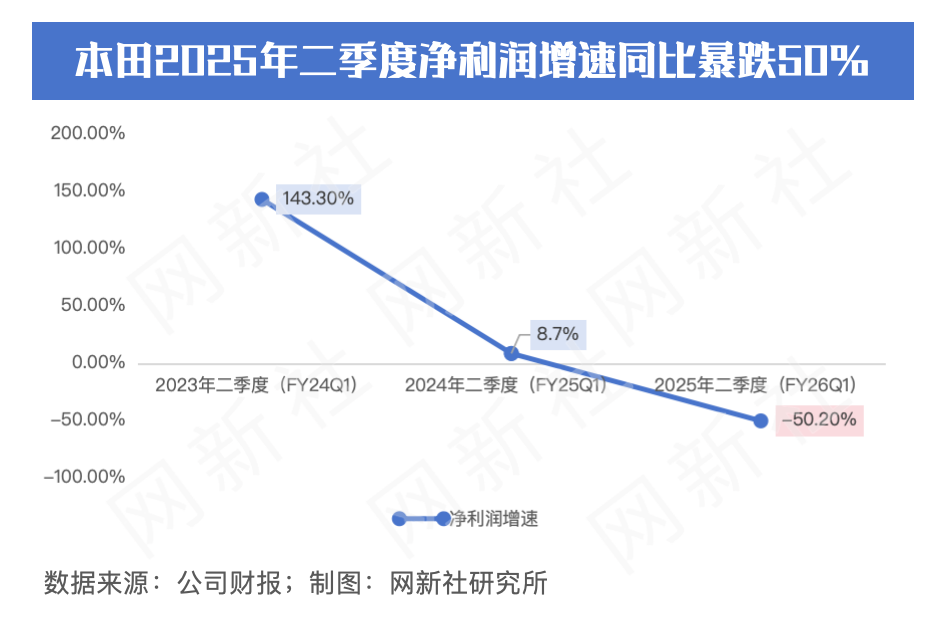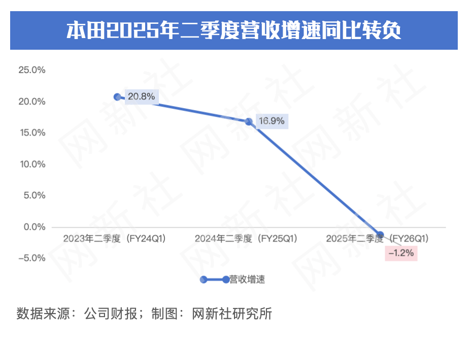 网新社研究所:日本汽车制造商本田公司公布2026财年第一季度(2025年4-6月)业绩。财报显示,本田25年二季度营收为5.34万亿日元,同比下降1.2%,这是近五年来首次出现同比下滑;净利润更是大幅下挫至1967亿日元,同比暴跌50.2%,创下三年来最差单季表现。
