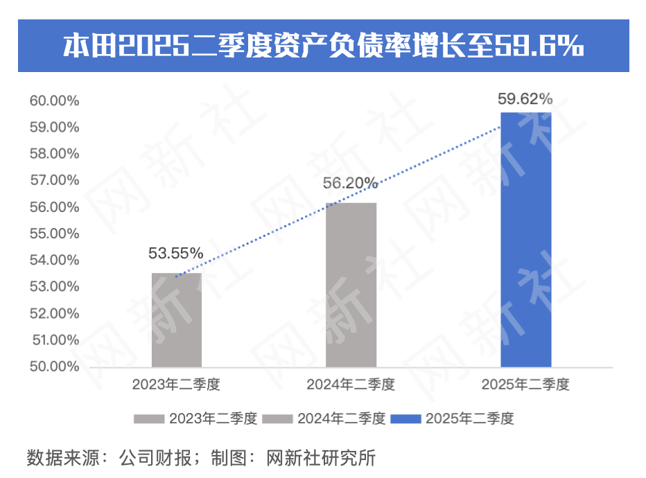 财务数据显示,截至二季度末,本田资产负债率升至59.6%,连续三年持续攀升;现金储备较上季度减少5200亿日元,降至4.01万亿日元,反映出公司在应对市场挑战时面临的资金压力。