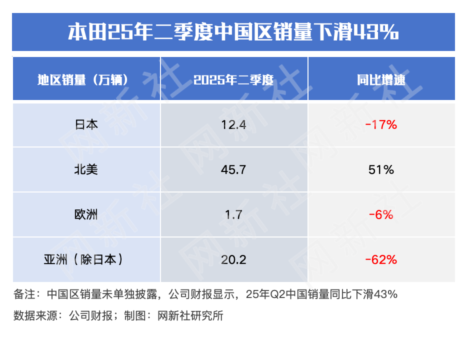 尤其令人关注的是,中国市场遭遇"滑铁卢",当期销量同比骤降43%,成为所有区域市场中表现最差的地区。分析师指出,在中国市场,本田正面临国产新能源品牌的激烈竞争,同时其电动化转型速度未能跟上市场变化,导致传统燃油车销量断崖式下跌,新能源车型市场份额持续萎缩。
