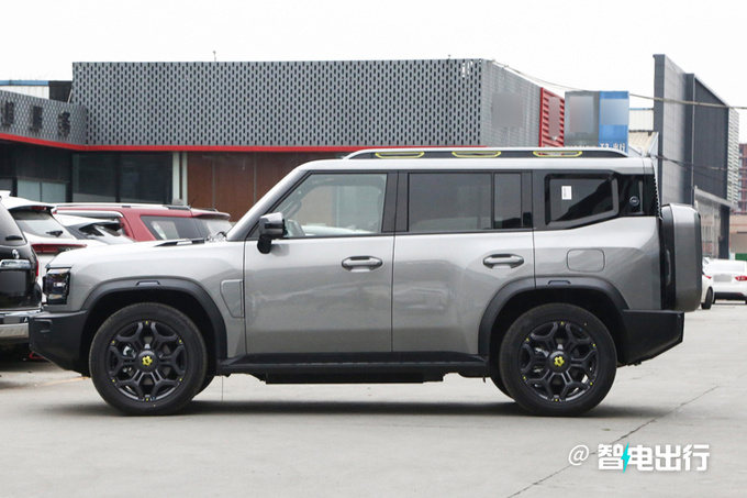 山海T2除车高外均与旅行者一致,轴距比哈弗猛龙长。新车采用黑色蜂窝状格栅,内部嵌入品牌英文标识;车侧提供行李架,下方配有固定式踏板;尾门为侧开式设计,悬挂外挂式备胎。