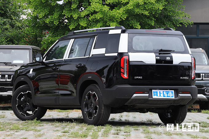 新BJ30轴距比捷途旅行者更大,前脸采用经典的三孔样式格栅,格栅内配有间断式LED灯组,两侧大灯组内部半圆形LED日间行车灯与之相连形成贯穿式的设计。车侧配备传统门把手、固定侧踏板,车顶采用悬浮式设计,搭载行李架。车尾搭载分体式尾灯,牌照架移至后保险杠中部。