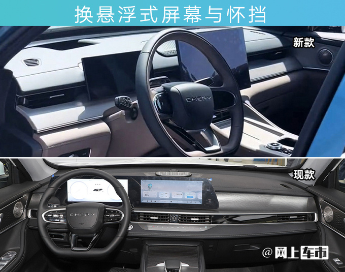 新瑞虎8 PLUS采用与瑞虎8L相似的内饰设计,换装悬浮式全液晶仪表+大尺寸中控屏,搭配怀挡换挡。新车还配备大功率手机无线充电、副驾老板键、副驾腿托、HUD抬头显示等配置。