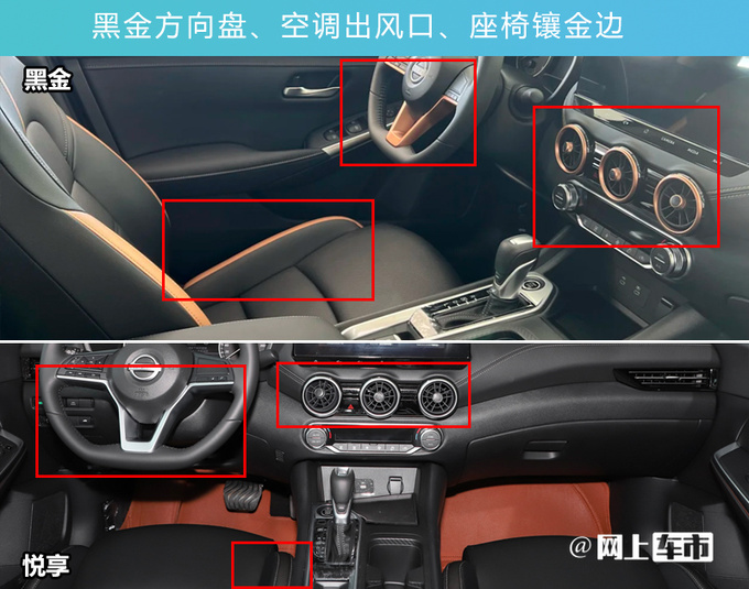 从东风日产经销商发布的信息来看,轩逸黑金版已经到店,相比悦享版增加了大量的金色元素,多了座椅通风和加热。