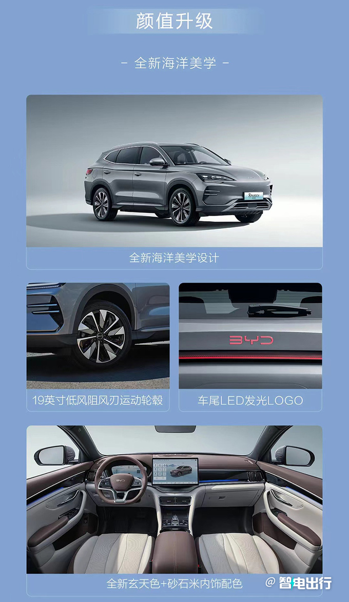 2025款宋PLUS EV在颜值、智能及配置3大方面升级。外观方面大灯组整合位置灯功能,车尾更换可发光LOGO;智能方面全系搭载DiLink 100智能座舱高阶版并引入5G速联,增加“预约用车”功能,可通过手机APP设置车辆自动进行电池加热;配置上升级了50W手机无线充电、方向盘加热及车载ETC功能。