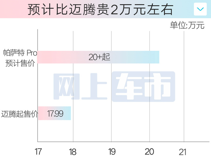 上汽大众某4S店销售表示,帕萨特B9(帕萨特Pro)已到店,将于9月上市,售价预计比现款(18.19万起)贵2万左右。帕萨特Pro车长较现款增加5.8厘米,采用中国本土化设计的数字化智慧座舱,入门版换搭1.5T发动机,替代现款1.4T。