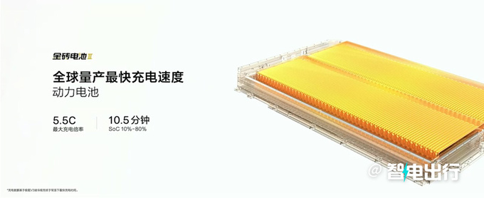新车基于SEA浩瀚架构下的PMA2+平台打造,全系搭载800V碳化硅高性能后电机,提供单/双电机2种动力可选,还配备车云一体AI BMS电池管理技术,最大充电倍率5.5C,充电15分钟续航增加582公里,让磷酸铁锂电池充电速度超越三元锂电池。