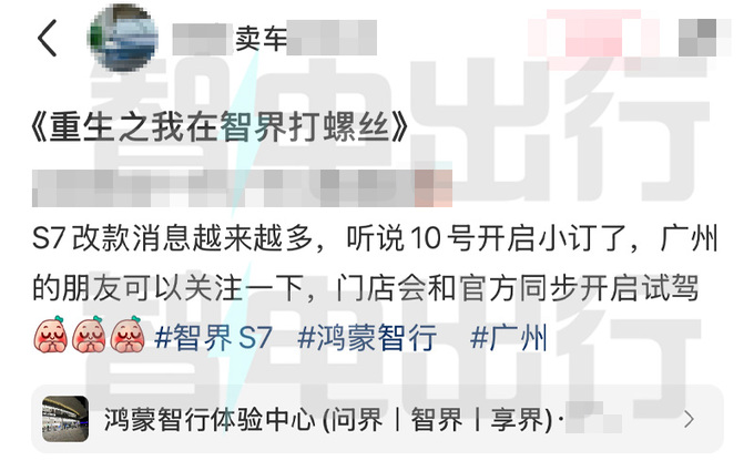 华为智界销售:新S7到店,5天后开订!降价增配?