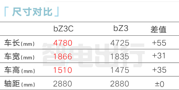 丰田bZ探索空间销售在社交媒体表示,bZ3C将在明年3月上市。新车轴距与bZ3相同,可视为其跨界版,搭载由比亚迪提供的电机与磷酸铁锂电池。