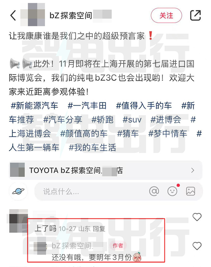 丰田销售:bZ3C明年3月上市!用比亚迪电池+电机