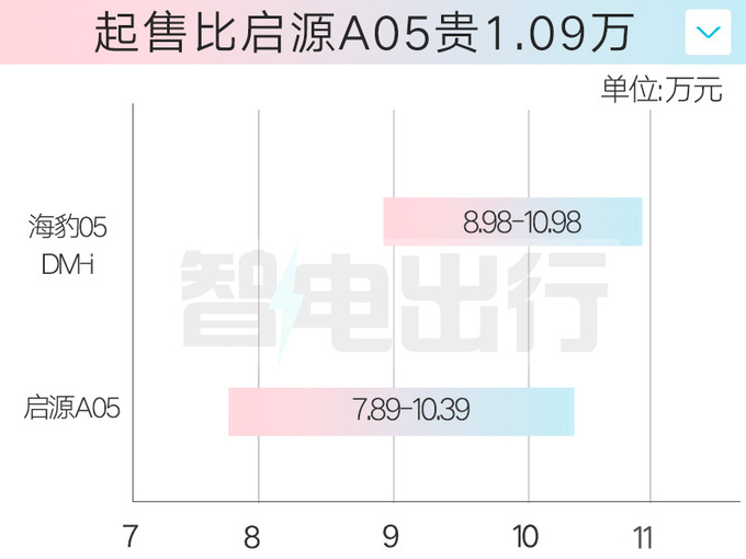 比亚迪海豹05DM-i可视为驱逐舰05的改款,预售价区间8.98万-10.98万,起售比驱逐舰05贵1万。车身增高20mm,升级为第5代DM混动系统。