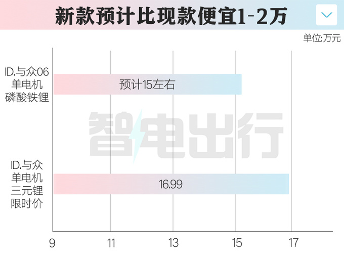 现款ID.与众成交价已降至16.99万起。考虑到磷酸铁锂电池成本更低,预计新车起售价将降至15万左右。
