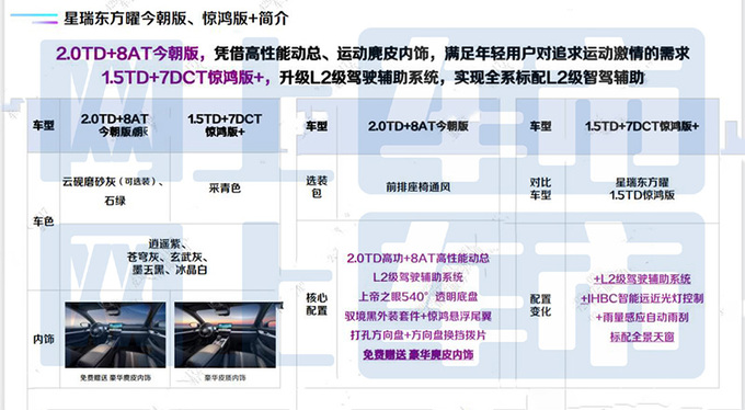 吉利星瑞东方曜新增车型内部文件让我搞到了!