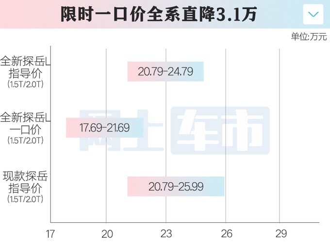 大众全新探岳L卖20.79-24.79万元!一口价降3.1万