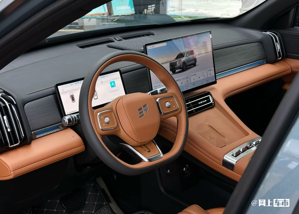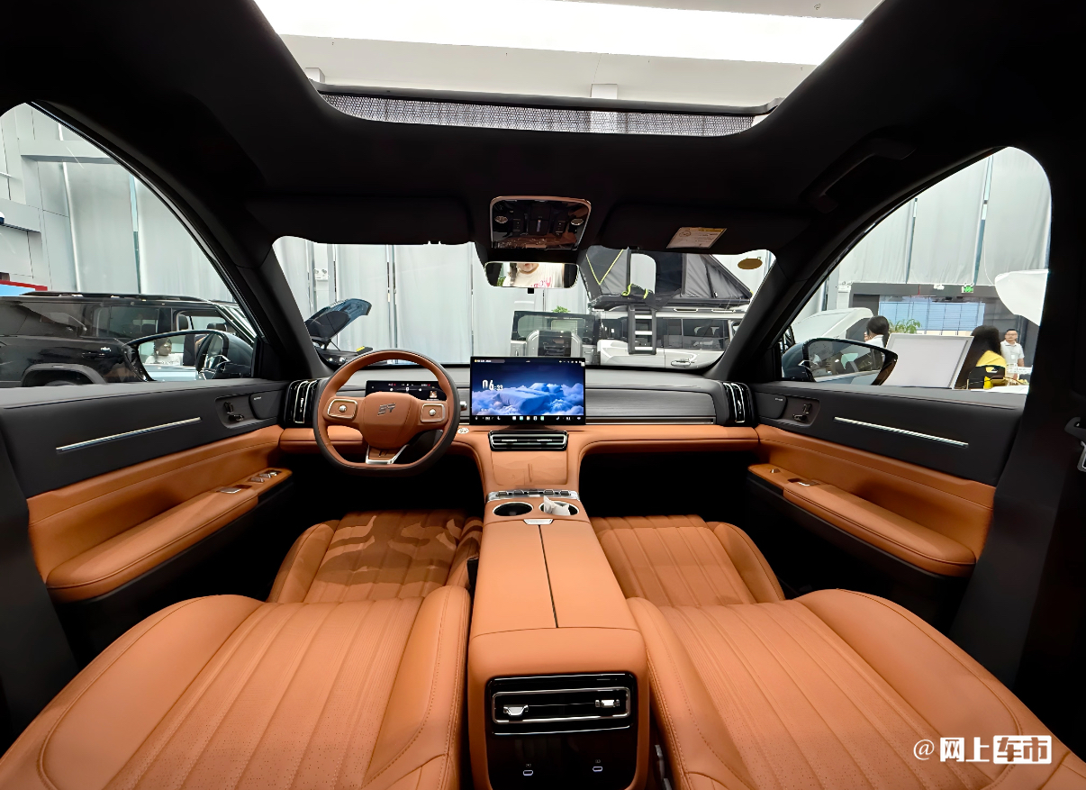 内饰做工真不输某些豪华品牌。门板上的水晶座椅拨键触感温润,64色氛围灯映着“高山飞瀑”造型的出风口,12层舒云座椅软硬适中,主驾的10点按摩功能按下时,瞬间懂了王耀庆说的“越级体验”。全家出行时,二排小桌板能放电脑,三排通过一键电动调节就能腾出空间,完全不挤。