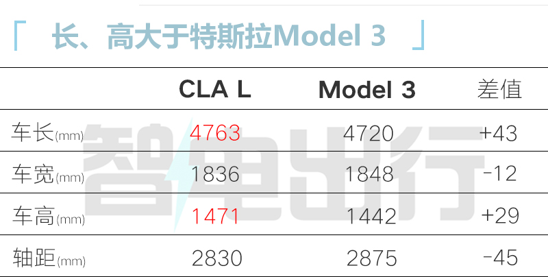 车身尺寸相比现款CLA有大幅提升,轴距更是多了10厘米。相比标轴C级和特斯拉Model 3,实际尺寸也更大。